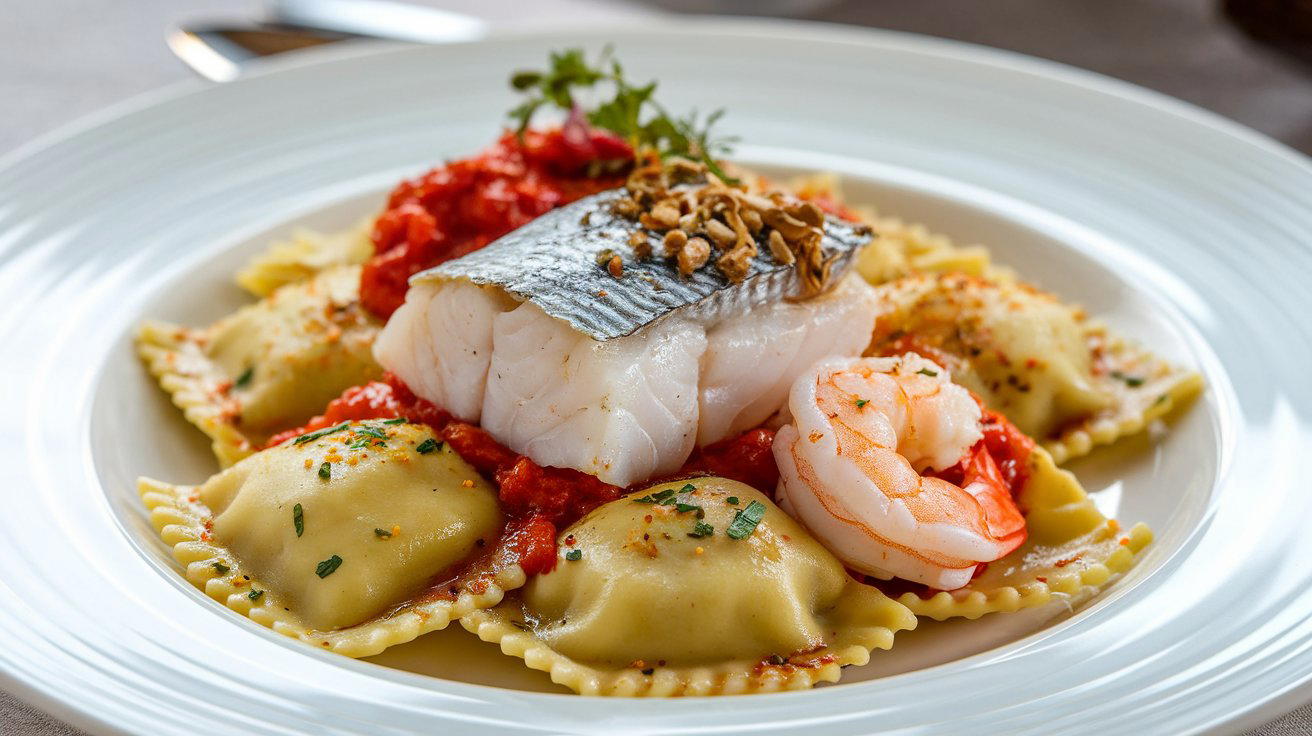 Combinações que harmonizam perfeitamente , Raviolli de Siri , espaguete de Frutos do Mar , tallarin ao lagostin