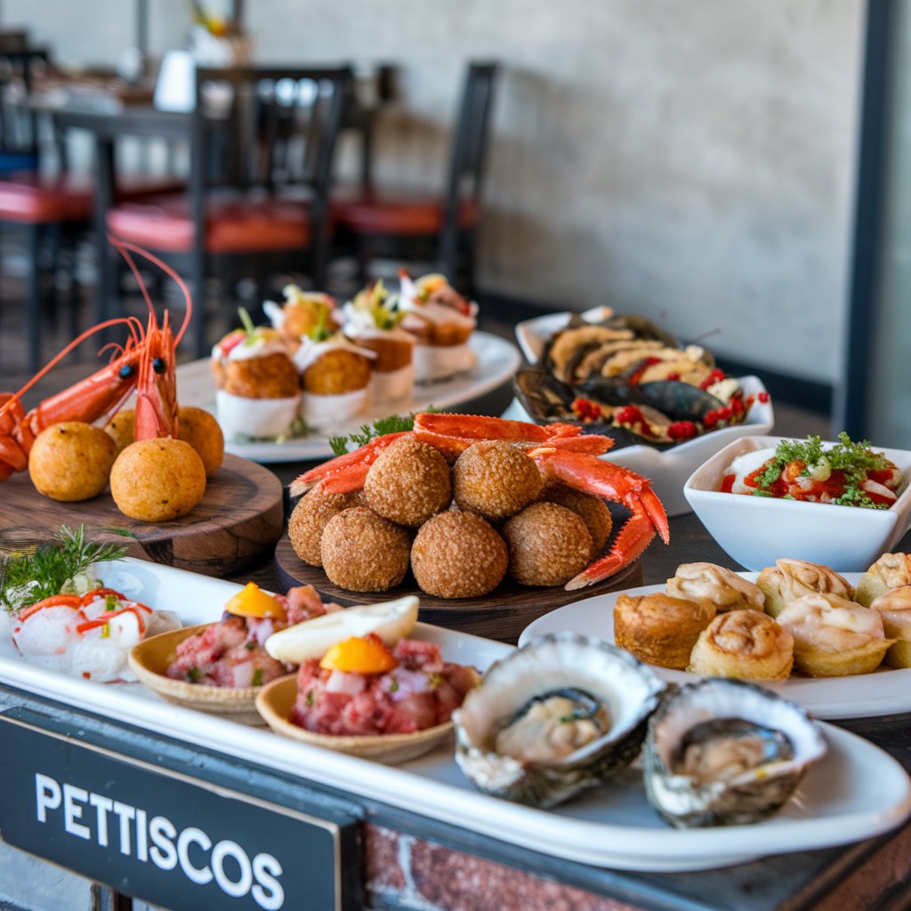 Casquinha de siri, isca de peixe , polvo ao vinagrete , camarão Crocante e mais.